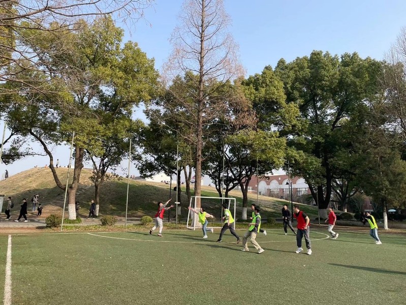 在赛前,第二党支部书记雷涛为大家进行详细的飞盘基础动作教学,并宣布安全规则和注意事项。随着口哨的响起,分组对抗开始,队员们在绿茵场上尽情地跑动、摆脱、迂回、穿插、传接、丢射,整个比赛过程紧张而又充满激情。大家默契配合、互相鼓劲加油,感受飞盘运动的魅力,体会团队合作的重要性,也在欢笑间更是加深了支部之间的合作与友谊。