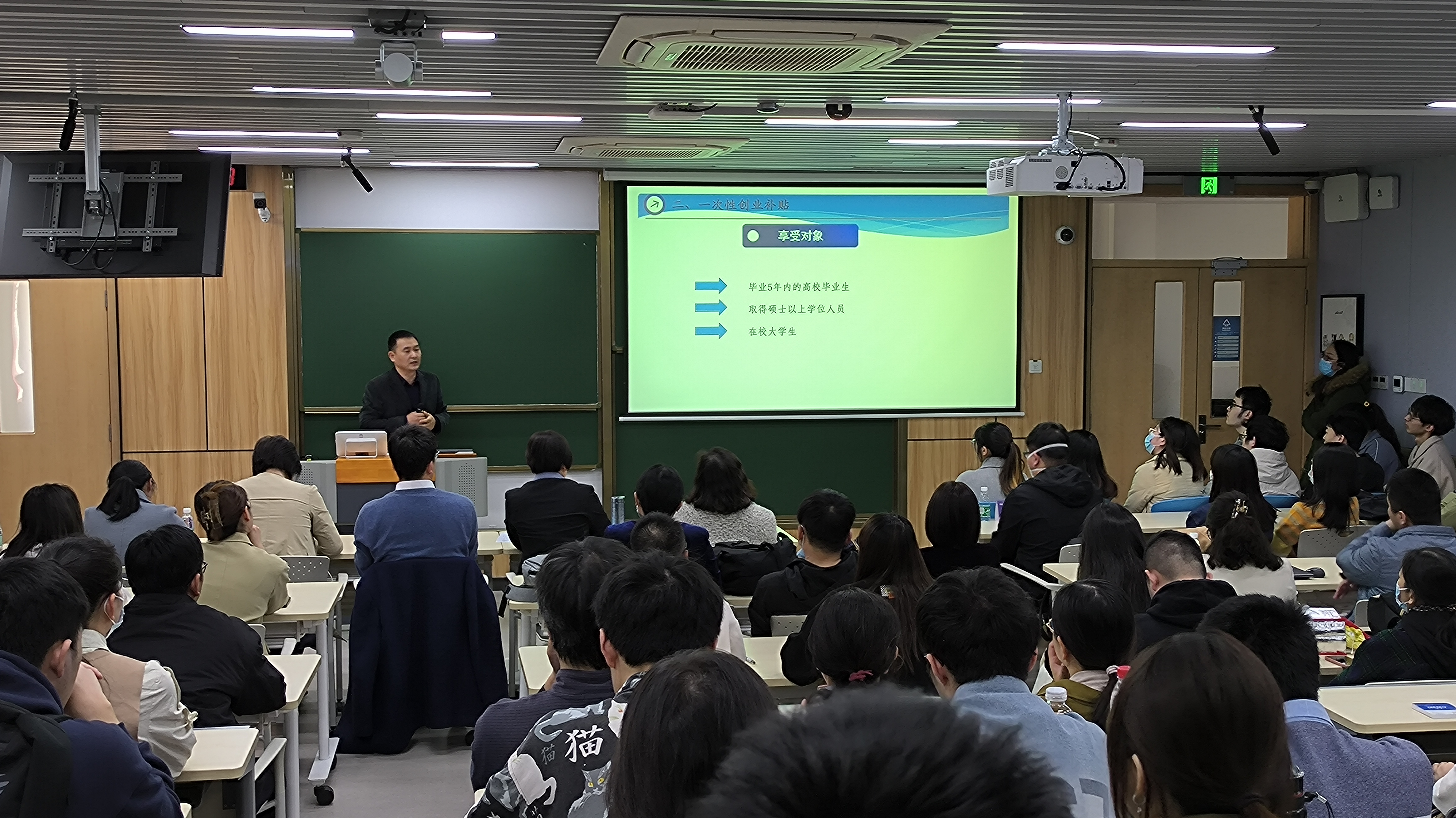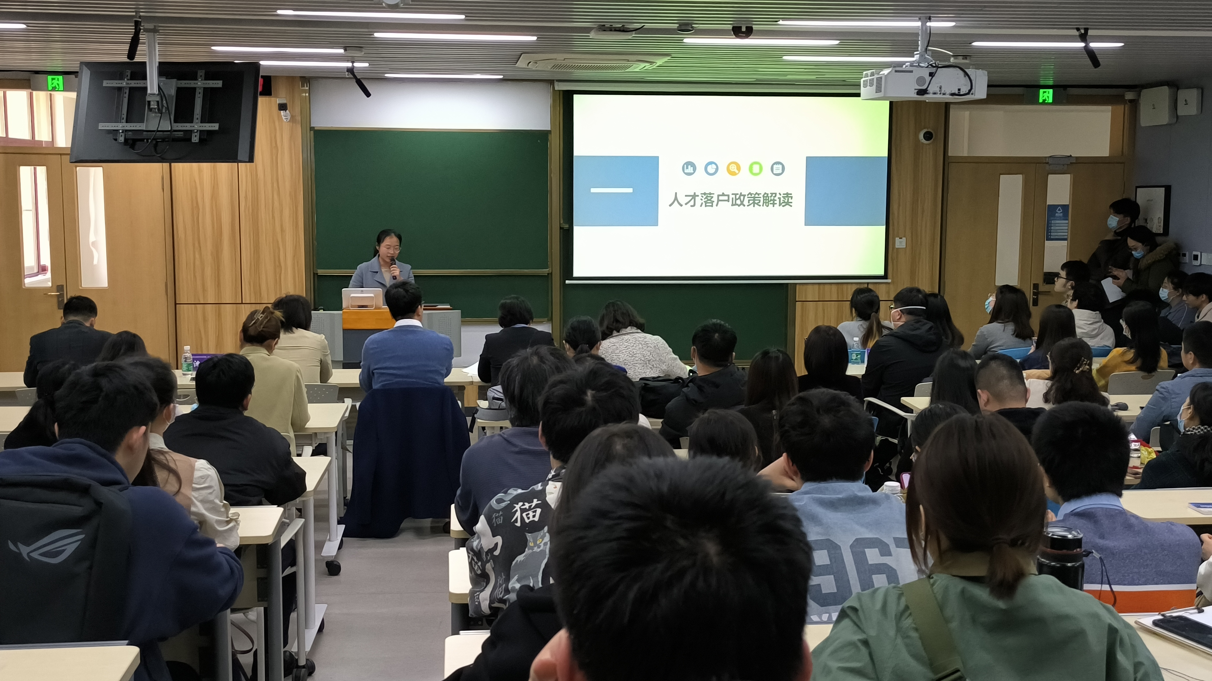 会议开始,播放了姑苏区的宣传片,苏州姑苏区是苏州历史悠久、人文积淀深厚的中心城区,也是全国首个国家历史文化名城保护区,通过视频介绍,提高了学生对姑苏区地理位置以及就业优势的认知。随后,姑苏区人社局李勇主任为现场的企业和同学讲解了姑苏区的就业创业政策,为学生介绍了最新的创业补贴机制,也真诚邀请和期待未来精英能够落户姑苏。姑苏区人社局沈艳红科长介绍人才政策,科普了人才档案处理方式,以及先落户后就业的人才吸引体系,让同学们熟悉和认识了档案的重要性,以及就业后档案的流动程序。