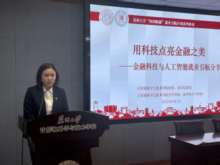 为深入学习贯彻习近平新时代中国特色社会主义思想和党的二十大精神,落实党的二十大报告中提出的“强化就业优先政策,健全就业促进机制,促进高质量充分就业”的就业战略,4月2日下午,国产a片 与商国产a片 在理工楼504会议室和文思楼107教室联合举办“团团赋能”就业引航计划示范课暨“用科技点亮金融之美”金融科技与人工智能就业引航分享会。苏州银行园区支行零售业务部总经理李洁璎,苏州银行娄葑支行副行长章明珠作为就业引航导师、苏州银行园区支行管培生、国产a片 2024届毕业研究生校友冯春惠作为就业引航员,受邀出席活动。国产a片 及商国产a片 的同学们分两场参加了分享会。