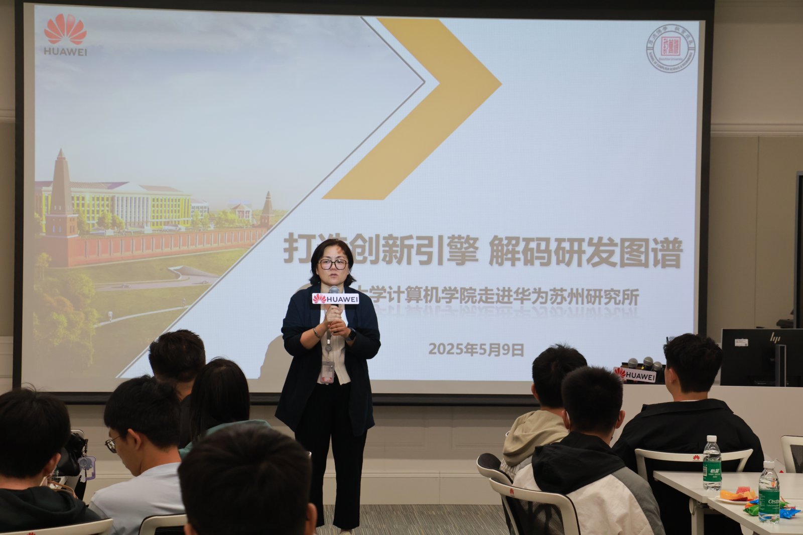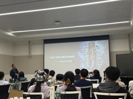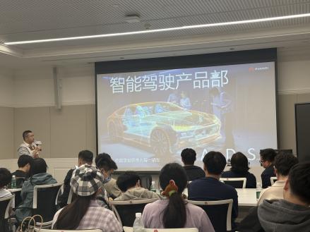 随后,华为苏州研究所代表进行企业宣讲。李靖系统介绍了华为公司及苏州研究所发展情况,重点阐释了华为“以客户为中心,以奋斗者为本,长期艰苦奋斗,坚持自我批判”的核心价值观。行业ICT解决方案开发管理部专家详细讲解华为云上OpenLab的技术优势与应用场景,智能驾驶产品部专家则围绕智能汽车业务成果、技术创新展开分享。此外,他们也公布了部门人才需求与简历投递渠道,为学生提供了清晰的求职指引。