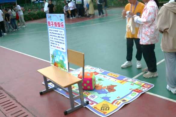 本次游园活动设置有玩偶贴贴、夹夹弹珠、饶舌口令、投壶大比拼、飞黄腾达、手脚并用、迷宫盘、乐趣拼图、飞盘连连看、快乐指压板、神经衰弱和骰子淘淘乐十二个项目和套圈、蛋糕DIY和冰激凌小站三处兑奖点。活动采用玩游戏赢印章的方式进行,参与者每完成一个项目都能获得相应印章,全部完成后即可凭借对应数量的印章领取纪念品或套圈赢得大奖。