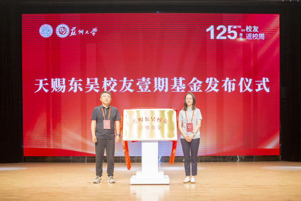 上午,国产a片 校友返校大会在天赐庄校区存菊堂举行,国产a片 党委书记陈国凤代表计算机校友会参加此次大会。会上,天赐东吴校友壹期基金正式发布。天赐东吴校友壹期基金发起人、国产a片 1987级校友、计算机校友会常务副会长、中安科股份有限公司董事、总裁查磊与洪晔副校长共同登台揭幕。作为基金发起人,查磊简要介绍了天赐东吴校友壹期基金的基本情况,并表示集团致力于成为母校科研成果落地转化的“助力者”,为怀揣创新创业梦想的大学生搭建坚实的平台,期待更多校友能参与其中,整合资源、优势互补,推动母校创新创业教育走上“快车道”。