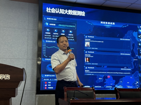 作为江苏省教育厅重点支持的研究生导师类产业教授计划入选专家,宋怀明博士深耕产学研融合领域多年,在推动技术创新与产业升级方面具有丰富经验。在历时两小时的精彩报告中,宋博士立足行业前沿,系统阐述了网络数据智能技术的发展现状与未来趋势。他首先深入浅出地解析了网络数据智能技术的核心概念与关键技术,随后通过舆情监测、风险预警、态势分析等鲜活案例,生动展示了大数据技术在社会认知精准测绘中的创新应用。宋博士特别强调,在数字经济蓬勃发展的新时代背景下,高等教育必须与产业需求同频共振,这正是江苏省实施产业教授项目的战略意义所在。