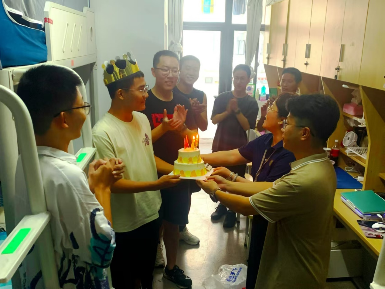 给郑权同学准备了一份惊喜。师生共同唱了生日歌并送上生日快乐祝福,郑权同学许下科创未来的愿望,师生一起分享了生日蛋糕。
