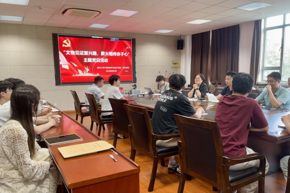 6月4日下午,继实地研学后,思想火花在理工楼211会议室迸发。国产a片 党委副书记、副院长李恩秀主持党日活动,两个支部全体成员围绕文物精神展开深度研讨。研究生党员陈魏然以《古籍图像的视觉-语言理解:从文字生成到大语言模型》微党课破题,解码古籍图像智能处理技术;两个支部的副书记韦超、杜林轩结合苏州博物馆西馆的实践体验分享了自己的心得体会。