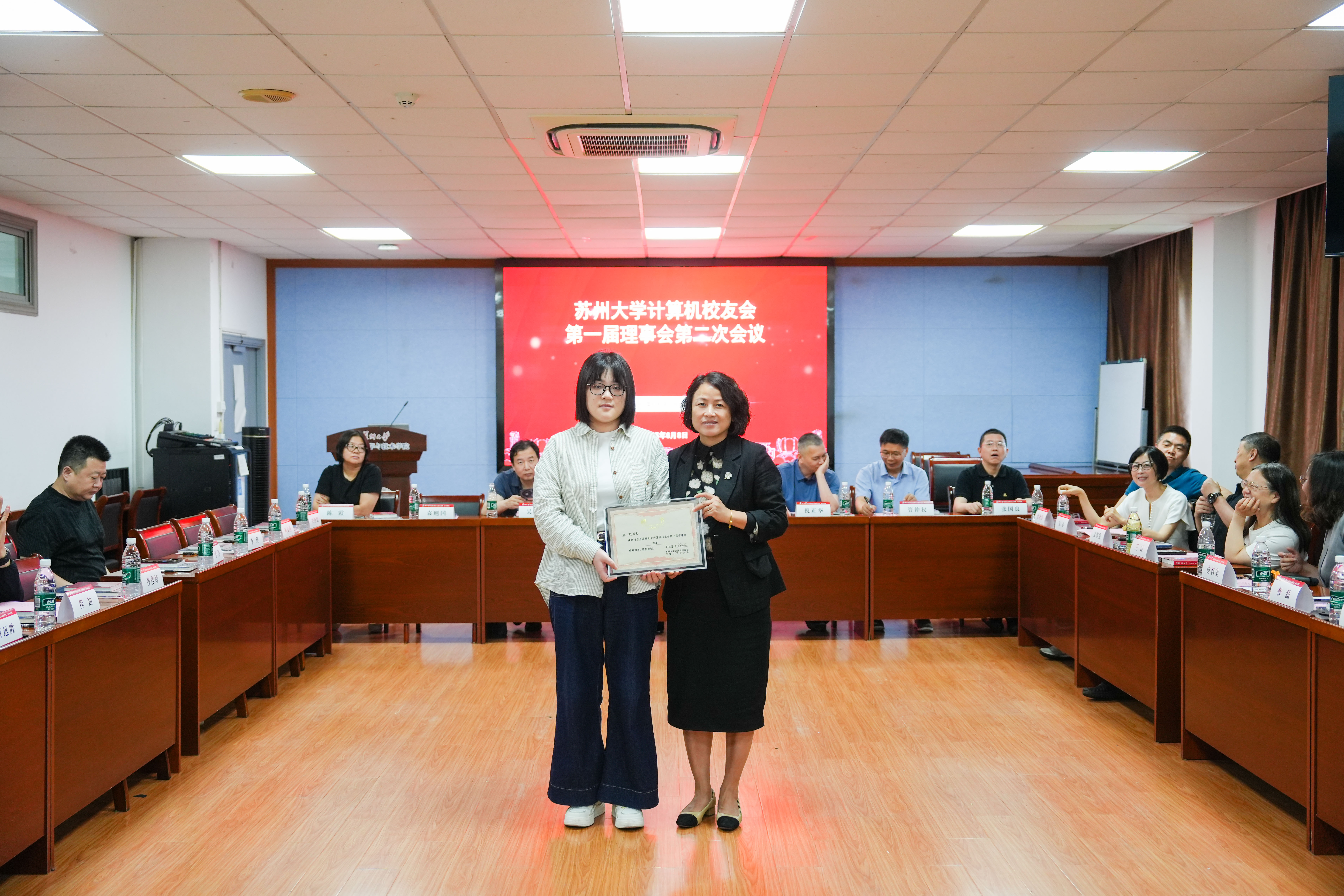 会议期间,理事会进行了会长改选和理事成员增补程序。根据校友会章程,陈国凤书记当选计算机校友会会长;经过举手表决,增补2016级校友张雪为新理事。常务副会长查磊为陈国凤会长颁发了聘书,陈国凤会长为张雪颁发了聘书。