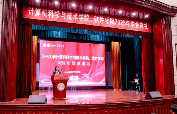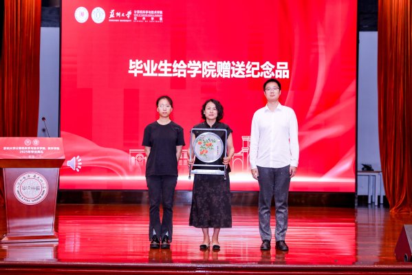 典礼在承载青春记忆的毕业视频中温情开场,课堂的专注、赛场的拼搏、活动的欢笑……一帧帧画面勾勒出难忘的东吴时光。在庄严的国歌声中,毕业典礼正式拉开帷幕。赵雷宣读了本科生考取和推免硕士研究生、硕士生考取博士研究生名单;居民宣读了2025届优秀本科及研究生毕业生名单;俞莉莹宣读了2025届校友联络员名单。院领导为优秀毕业生及校友联络员颁发证书、聘书并合影留念。