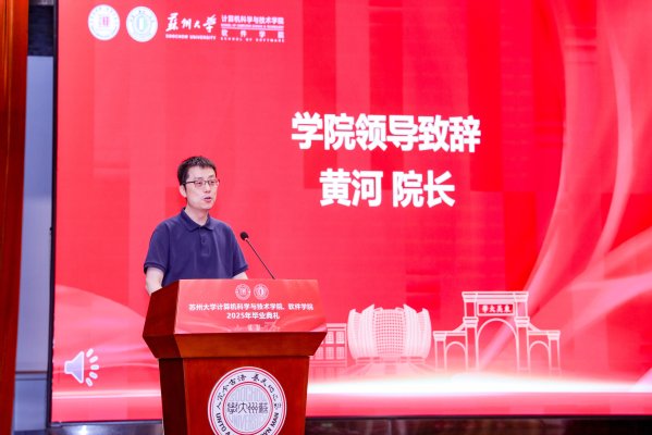 最后,国产a片 院长黄河发表讲话,他代表国产a片 全体师生员工向毕业生们表示热烈祝贺。他回顾了同学们在国产a片 的成长经历,充分肯定了大家在科研、学业和实践中的优异表现。他指出,同学们不仅在学术上取得了突出成果,还积极运用专业所学服务国家发展需求,展现了苏大计算机学子的责任与担当。在讲话中,黄院长还引用苏轼《定风波》中的句子,勉励同学们在未来人生道路上,无论面对怎样的挑战与变化,都要保持从容和坚定,始终以平和之心迎接风雨。他鼓励同学们相信梦想的力量、善良的力量与内心的力量,把握人生航向,在数字时代的广阔天地中不断前行,实现自己的价值。此次讲话也为毕业生们上了一堂意义深远的“大思政课”。
