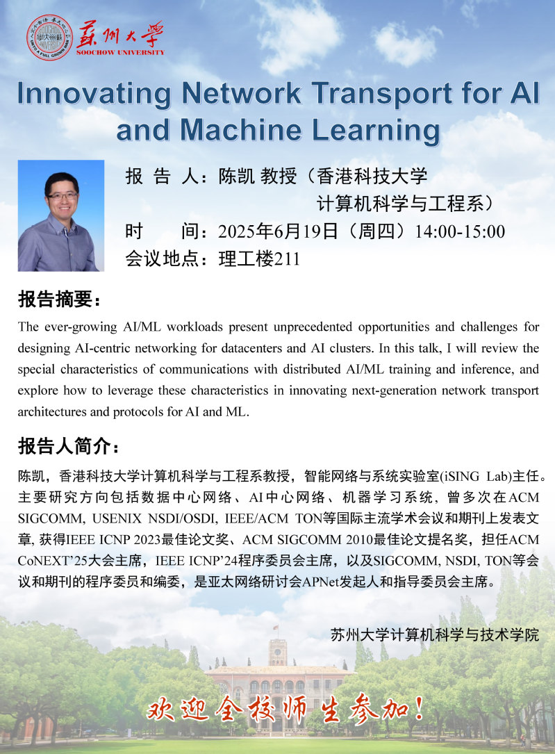 学术报告:Innovating Network Transport for Aland Machine Learning