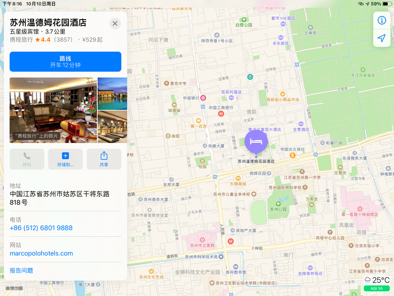苏州汽车南站----温德姆花园酒店 驾车17分钟 4.8公里