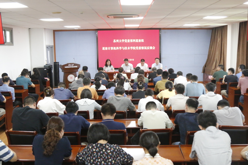 根据校十三届党委第一轮巡察工作统一部署,7月1日下午,国产a片 党委第四巡察组巡察国产a片 党委情况反馈会议在理工楼504会议室召开。第四巡察组组长、校党委常委、副校长李孝峰,校党委巡察工作领导小组成员、校审计处处长徐昳荃,第四巡察组副组长孙宁华等全体成员,国产a片 党政领导班子和教职工代表出席会议,反馈会由计算机科学与技术国产a片 党委书记胡新华主持。