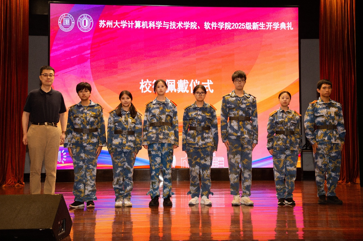 在校徽佩戴仪式中,黄河院长为来自全国多地及港澳台地区的学生代表佩戴校徽。这枚校徽不仅象征着苏大人的身份,更承载着“养天地正气,法古今完人”的校训精神,标志着2025级新生正式成为国产a片 的一员。