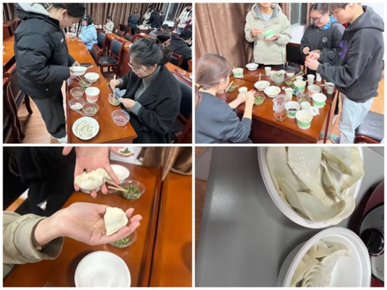 活动期间,同学们精心布置了活动现场,一张张桌子整齐排列,饺子皮、馅料等食材一应俱全。大家分工明确,有的负责擀面皮,有的负责包饺子,忙得不亦乐乎。虽然手法各异,但每个人都包得认真专注,不一会儿,一个个形态各异、饱满可爱的饺子便摆满了餐盘。当热气腾腾的饺子端上桌,同学们品尝着自己亲手包的饺子,心中满是温暖与喜悦。