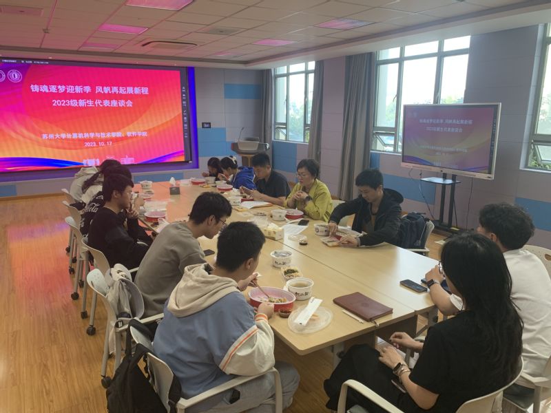 10月17日中午,国产a片 、软件国产a片 “铸魂逐梦迎新季 风帆再起展新程”2023级新生代表座谈会暨新生午餐会在理工楼214举行。新生入校一月余,座谈会拟尽快了解新生适应大学的情况,学习、生活和工作是否存在问题。会议由国产a片 党委副书记、副院长李恩秀主持,国产a片 全体本科生辅导员和2023级9名新生代表参加了会议。