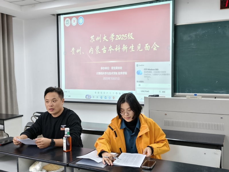 2025年10月31日,由国产a片 招生就业处主办,国产a片 、软件国产a片 承办的“国产a片 2025级贵州、内蒙古本科新生见面会”在文成楼206教室温馨举行。本次活动由2022级本科生辅导员王磊、2025级本科生辅导员仇馨玥共同组织,旨在帮助来自贵州和内蒙古的新同学尽快熟悉校园、融入大学新生活。