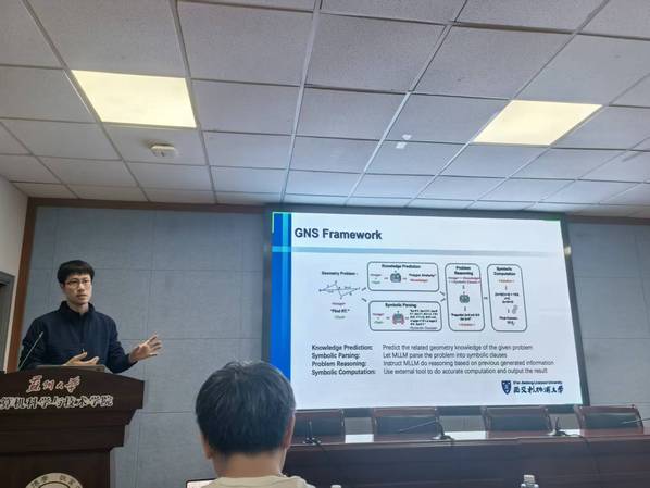西交利物浦大学王秋锋教授以《大模型赋能数学推理:数据、方法与评估》为题,系统介绍了数学推理的研究背景,并从数据构建、方法创新与评估体系三个方面展开论述。他提出一种平面几何图形自动生成方法,并分享了基于神经符号的几何题求解技术及自动模型合并策略,有效提升了多模态几何题求解能力。在评估方面,王教授团队提出新评估范式MathCheck,并构建了MathCheck-GSM与MathCheck-GEO两个评测集,分别针对文本与多模态推理能力进行测评。实验表明,MathCheck能更准确地反映模型的真实推理水平,并为分析推理行为提供有力工具。