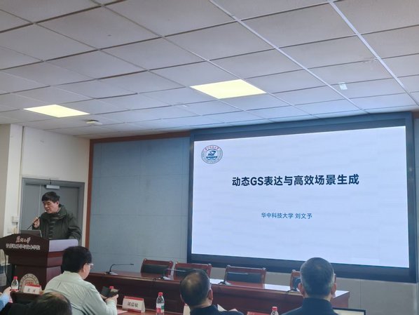 刘文予教授以“高斯泼溅表达和高效场景生成”为题,探讨了动态场景重建与生成的前沿进展,重点介绍了团队提出的四维高斯泼溅(4D-GS)方法及其在医学影像与移动端实时生成中的创新应用。