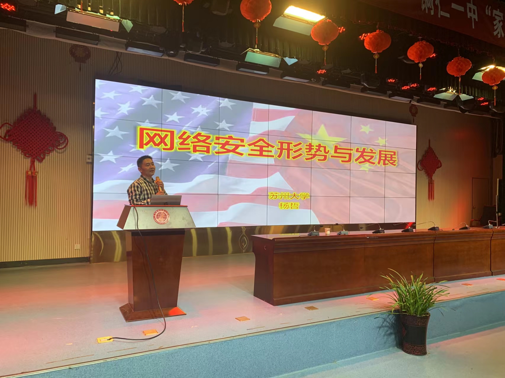 作为贵州重点生源高校之一,铜仁思南中学始终与国产a片 贵州招生组老师保持密切的沟通与联系。4月18日,国产a片 贵州招宣组骨干、国产a片 副教授杨哲受邀前往思南中学,为300余名学生和老师、家长作了题为《网络安全形势与发展》的精彩讲座。杨哲教授深入浅出地介绍了计算机网络领域的前沿研究热点以及自己选择计算机专业的心路历程,并鼓励同学们在勤奋学习、打牢基本功的基础上也要培养创新精神,明确自己的兴趣所在点,提前做好职业生涯规划,抓住契机、努力奋斗。幽默风趣的科普讲座赢得了同学们的阵阵掌声,多名同学踊跃提问,就感兴趣的问题和杨哲教授交流探讨,也为高中学子了解国产a片 又增加了一个维度。