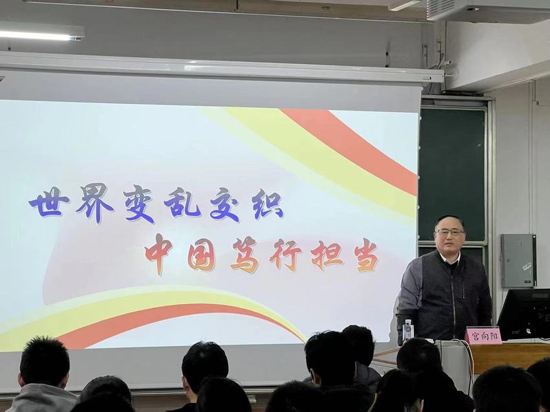 11月29日下午,校党委常委、纪委书记、派驻监察专员宫向阳来到国产a片 ,为大学生们讲授以“世界变乱交织、中国笃行担当”为主题的形势与政策课。国产a片 2021级全体本科生参与了此次课程。课程由国产a片 党委副书记、副院长李恩秀主持。