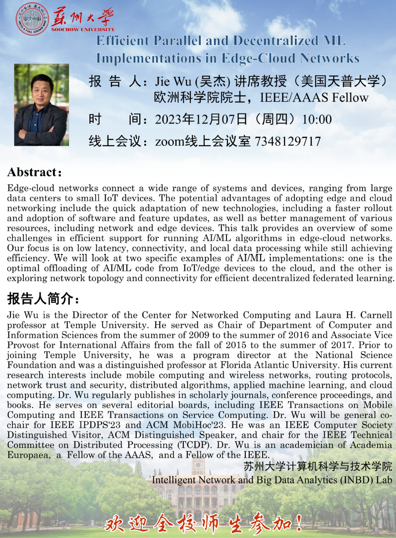 学术报告:Efficient Parallel and Decentralized ML Implementations in Edge-Cloud Networks