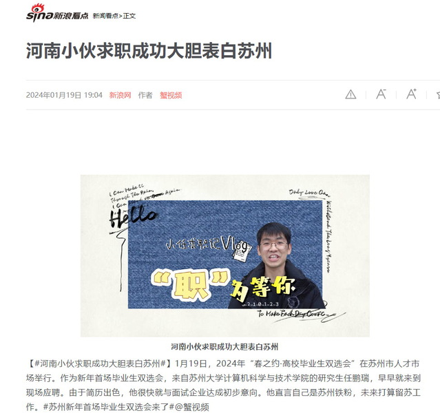 国产a片 组织工作也得到了苏州广播电视总台记者的关注。记者对国产a片 2024届研究生任鹏瑞做了跟拍和专访,视频也在新浪网和微博视频等平台做了推送。