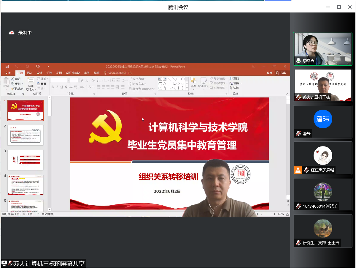 为了保证毕业班返校离校中学生党员作用发挥,加强毕业班党员党组织关系转移的规范性,强化毕业生党员的初心使命,6月2日,国产a片 组织召开了“重温入党誓词 坚定信念做合格党员”毕业生党组织关系转移培训暨毕业生党员工作会议。全体毕业班学生党员、全体学生党支部书记与会,院党委副书记、副院长李恩秀主持。