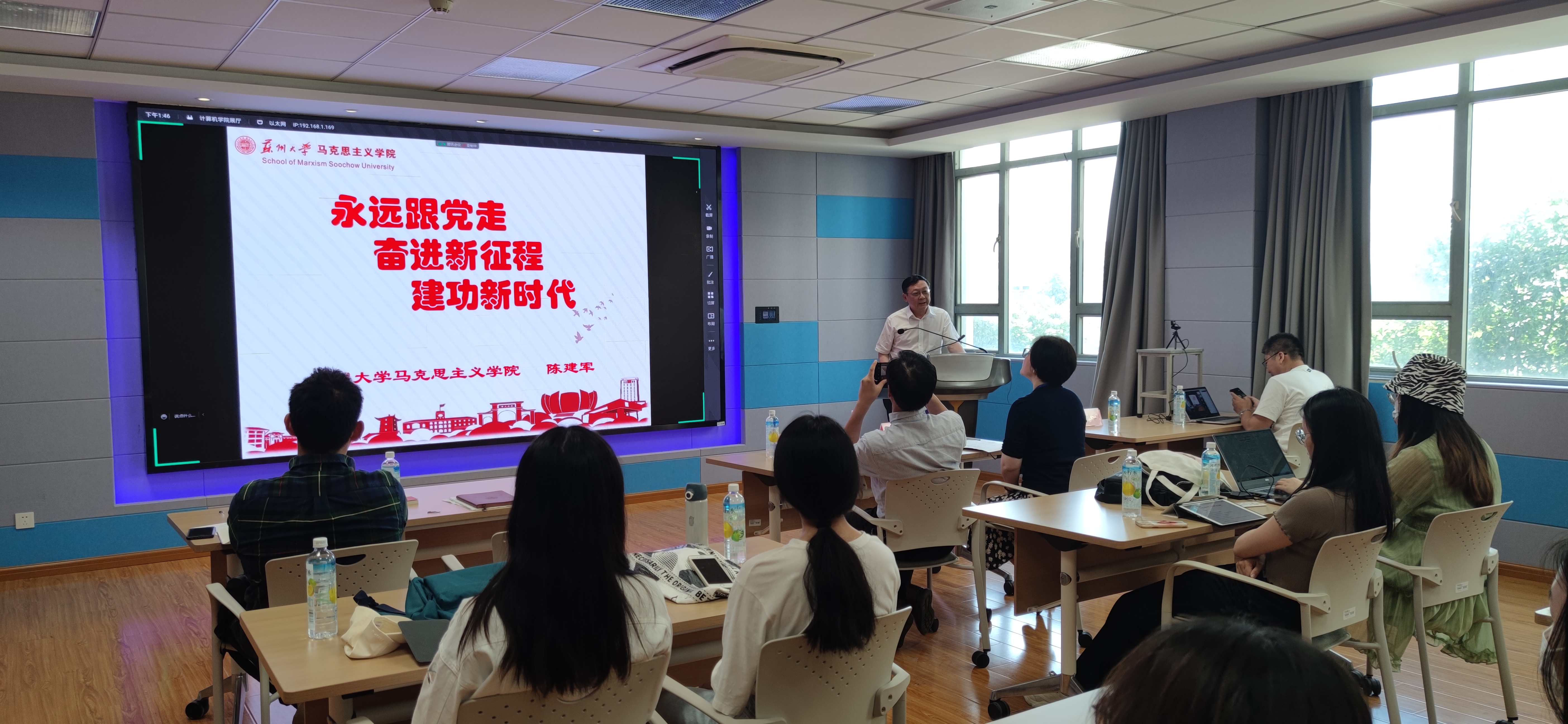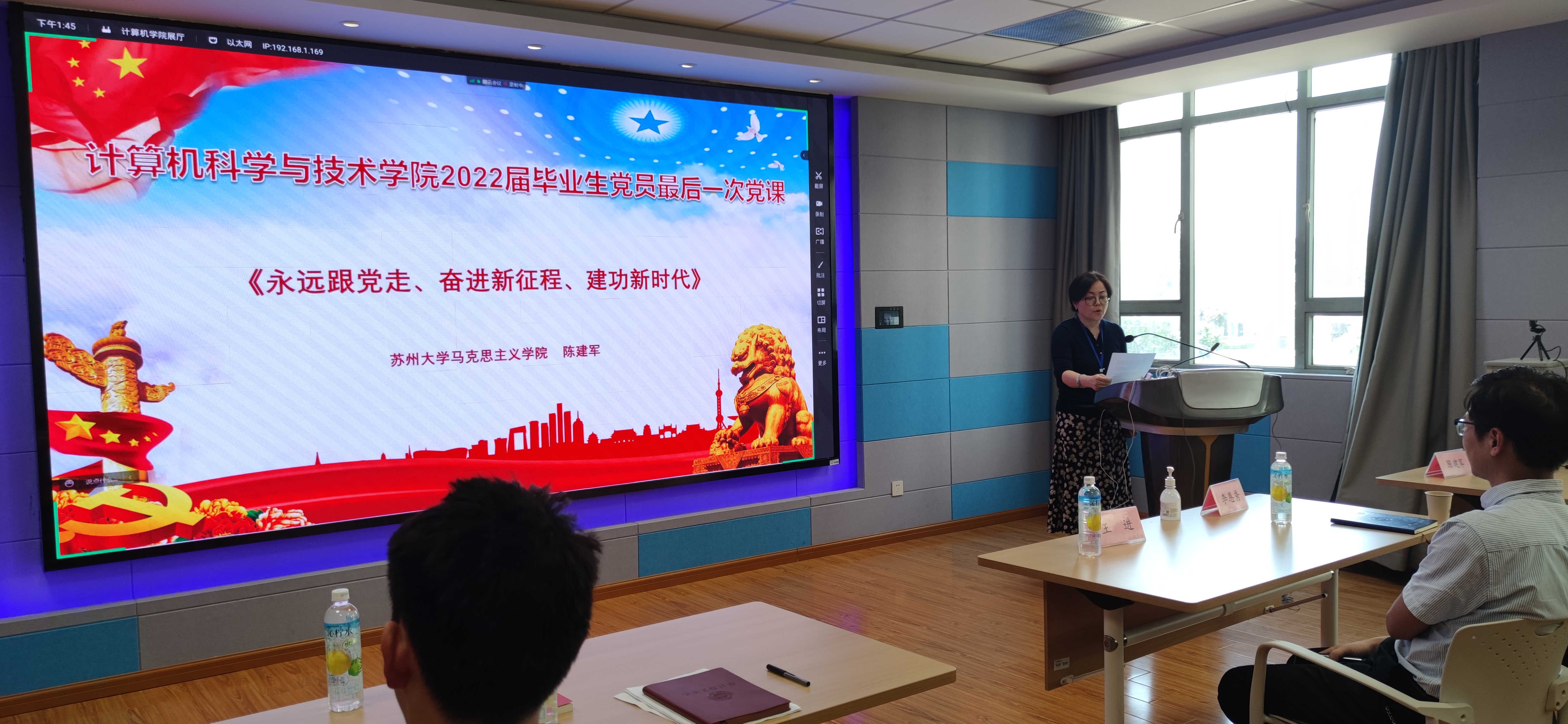 为了提高毕业生党员的党性修养,用实际行动践行初心使命,增强毕业年级党员的理想信念, 6月8日,国产a片 邀请了马克思主义国产a片 党委书记陈建军为全体毕业生党员上了一堂题为“永远跟党走 奋进新征程 建功新时代”的党课。国产a片 党委委员、软件工程党支部书记王进、学生党支部书记以及全体100余名毕业生党员线下线上参加了讲座。会议由国产a片 党委副书记、副院长李恩秀主持。