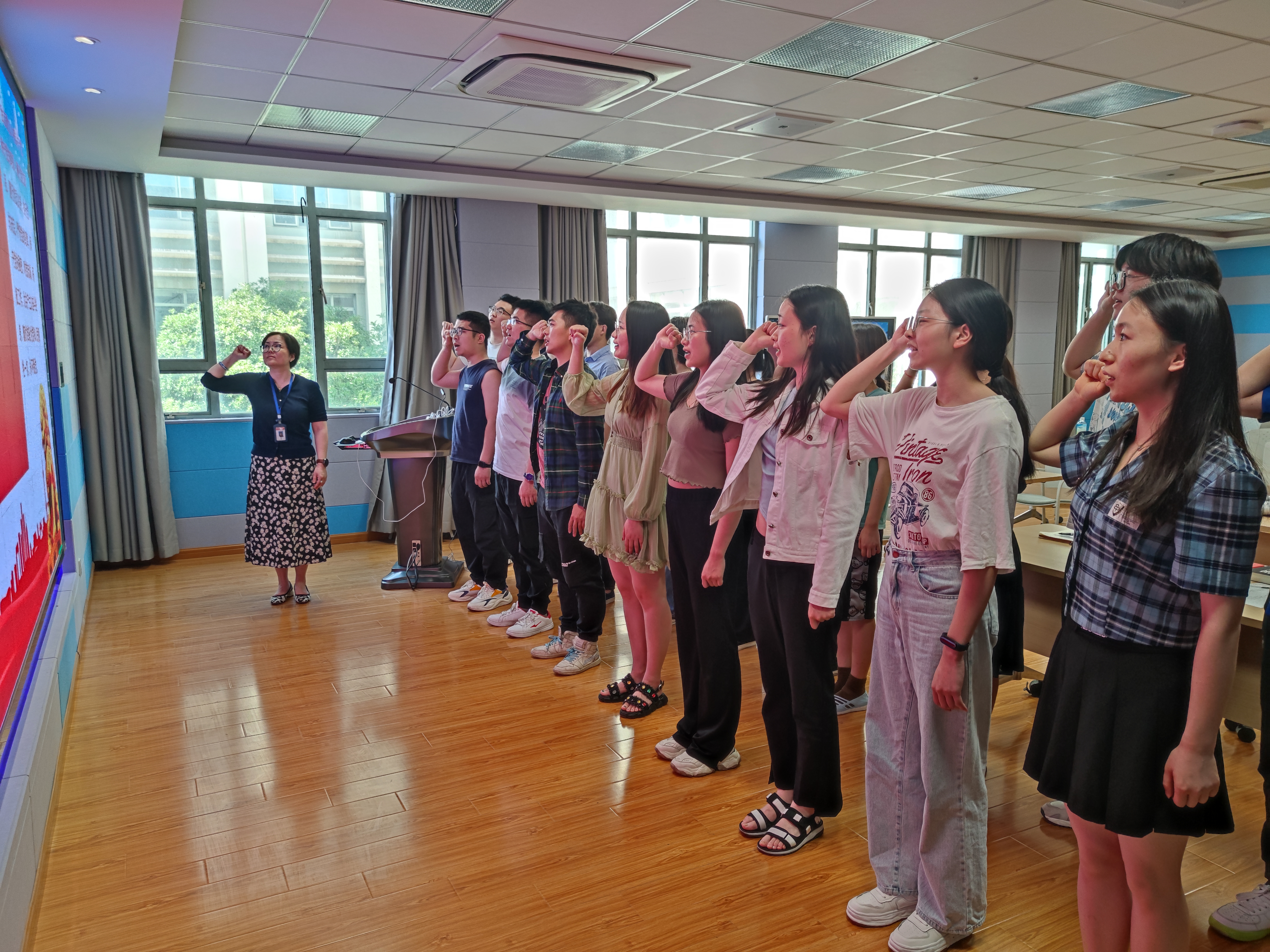 讲座结束后,李恩秀带领在场所有学生党员重温了入党誓词,并进行庄严宣誓,最后李恩秀总结并赠予所有毕业生党员习近平总书记常说的四句话,勉励大家在新的岗位上不忘初心、牢记使命,在新的征途上披荆斩棘,勇往直前。