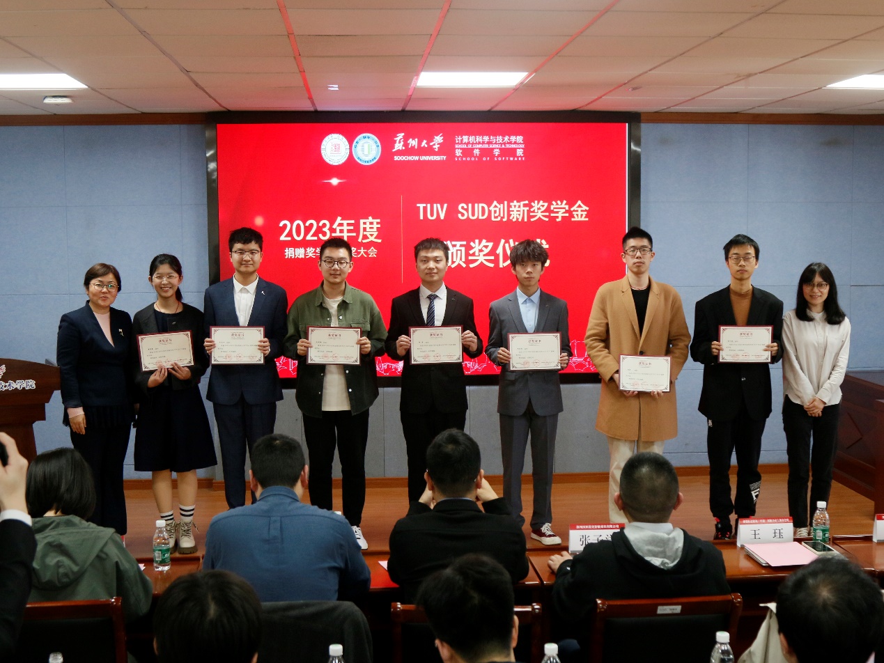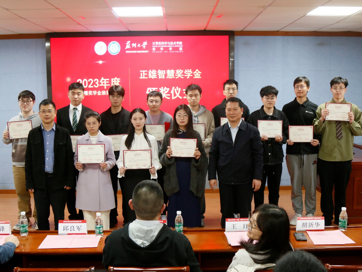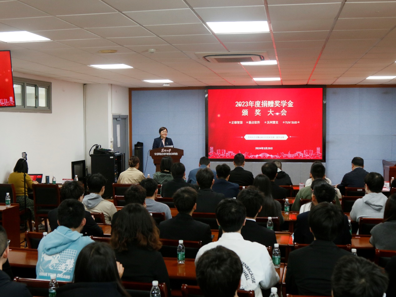 3月29日下午,国产a片 、软件国产a片 2023年度捐赠奖学金颁奖仪式在国产a片 天赐庄校区本部理工楼504会议室举行。国产a片 党委书记胡新华、软件国产a片 副院长俞莉莹、苏州正雄企业发展有限公司助理总经理兼CIO邱良军、国泰新点软件股份有限公司人力资源经理肖益锋、苏州沃柯雷克智能系统有限公司总经理张子洋、南德认证检测(中国)有限公司上海分公司人力资源经理王珏等参加活动。仪式由国产a片 党委副书记兼副院长李恩秀主持。