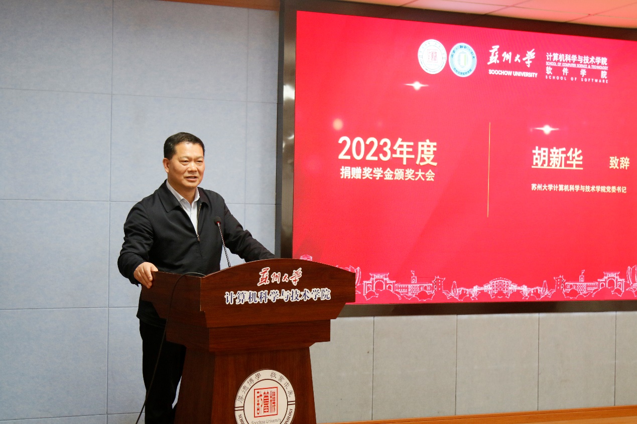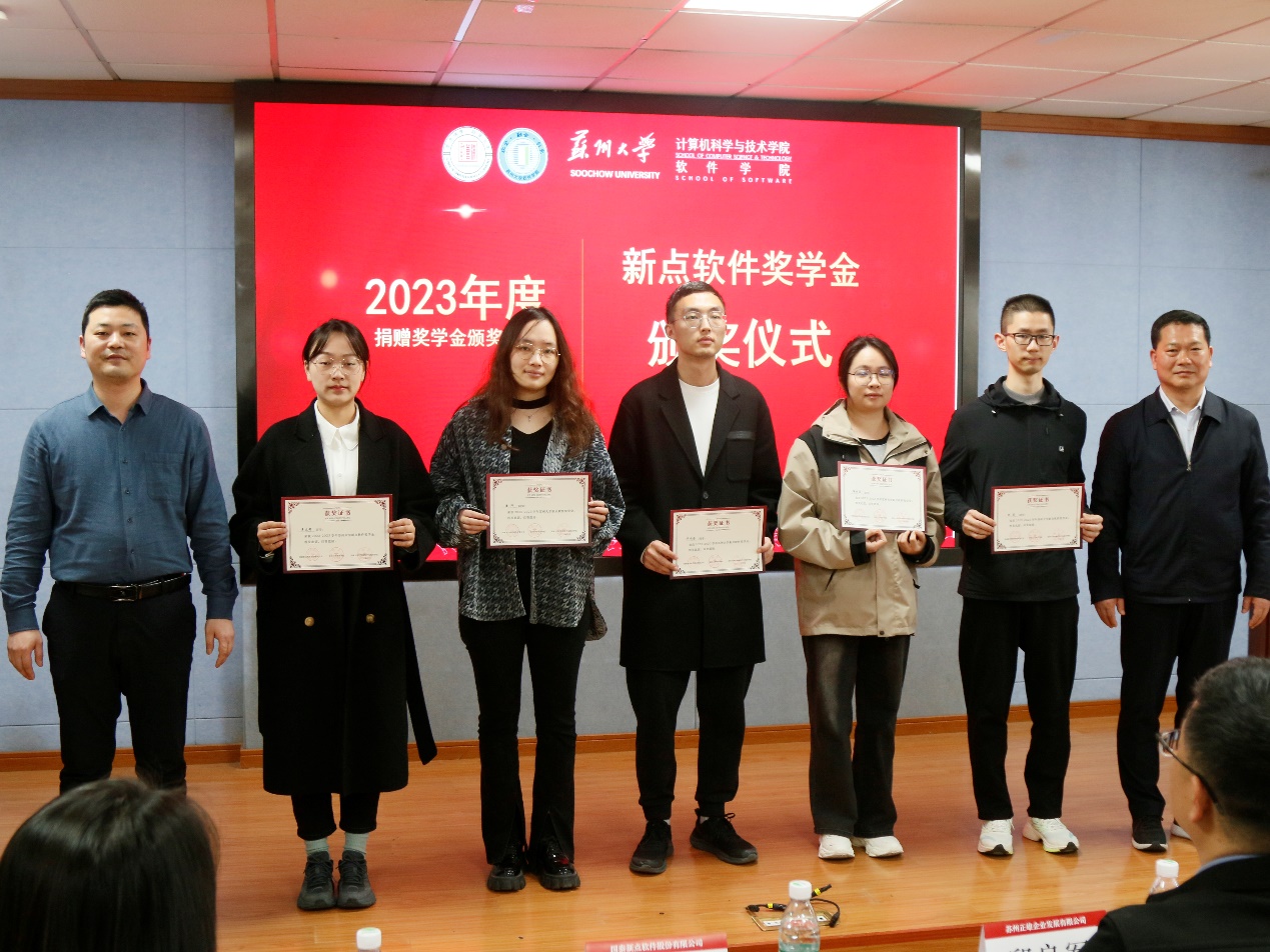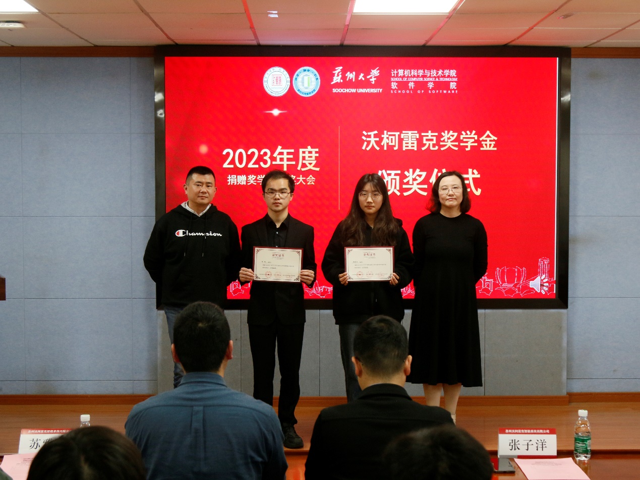 3月29日下午,国产a片 、软件国产a片 2023年度捐赠奖学金颁奖仪式在国产a片 天赐庄校区本部理工楼504会议室举行。国产a片 党委书记胡新华、软件国产a片 副院长俞莉莹、苏州正雄企业发展有限公司助理总经理兼CIO邱良军、国泰新点软件股份有限公司人力资源经理肖益锋、苏州沃柯雷克智能系统有限公司总经理张子洋、南德认证检测(中国)有限公司上海分公司人力资源经理王珏等参加活动。仪式由国产a片 党委副书记兼副院长李恩秀主持。