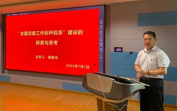 颁奖环节结束后,胡新华向与会人员主讲了《全国党建工作标杆院系建设的探索与思考》主题微党课,对创建全国党建工作标杆院系作全面动员。胡新华开宗明义,作为国产a片 首批党建工作标杆院系培育项目入选单位,国产a片 党委工作目标将定位努力创建全国党建工作标杆院系。胡新华将国产a片 的创建思路置于国产a片 “全国党建工作示范高校”创建工作大背景中,与落实国产a片 的“十四五”规划协同开展,结合国产a片 现有的工作基础和存在的问题,逐条剖析党委层面“五个到位”和支部层面 “七个有力”的各项要求,通过实施三大工程破解难题。胡新华指出,党委将实施强基工程,组织党支部专题培训,提升党建工作规范性,凝练支部工作法;实施领航工程,通过党委班子、支部书记和支委以及全体党员中优秀分子三个层次推进党组织核心作用的发挥;实施先锋工程,树立先进典型,凝练国产a片 精神。