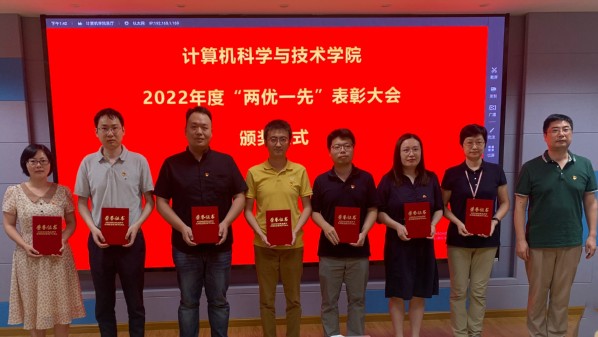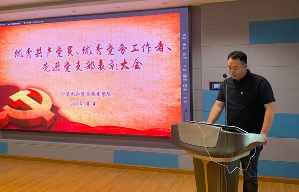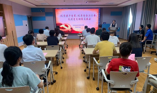 为庆祝中国共产党成立101周年,表彰先进,7月1日下午,国产a片 召开2022年“两优一先”表彰大会,国产a片 党委书记胡新华主讲微党课并进行党建工作标杆院系创建动员,党委副书记、副院长李恩秀主持会议。有关党委委员,教职工各党支部全体支部委员,行政党支部全体党员,各学生党支部党员代表,优秀共产党员、优秀党务工作者和先进党支部受表彰代表近30人现场参加,全体学生党员在线上参加会议。