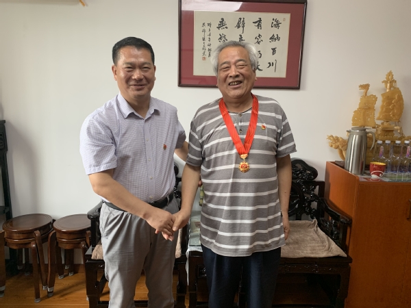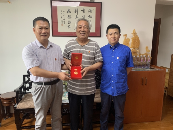 胡新华书记登门颁发“光荣在党50年”纪念章并慰问老党员