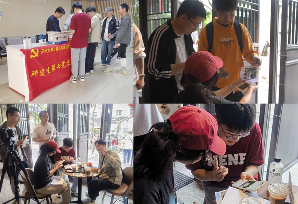 活动自理工楼大门启动,党员同志们踏上了这场集知识与挑战于一体的独特征程。在”毅行“出发签到处,他们有序领取活动物资和任务卡,在各个打卡点位设计了丰富多样的知识挑战和互动环节,既考验了同志们的知识储备,也增强了他们的团队协作精神。在相门点位,同志们面对《中国共产党纪律处分条例》内容的随机抽题,积极思考、竞相回答;玫瑰园点位涵盖了”两会精神“等内容的问答环节,引发了同志们对当前政治热点的深入思考和交流;娄门点位则考验同志们对苏州地标性建筑、习近平总书记在苏州考察地点了解情况,激发了同志们对总书记调研之路的分析追随;东园点位则是针对党史中的重要时间节点进行了测试。