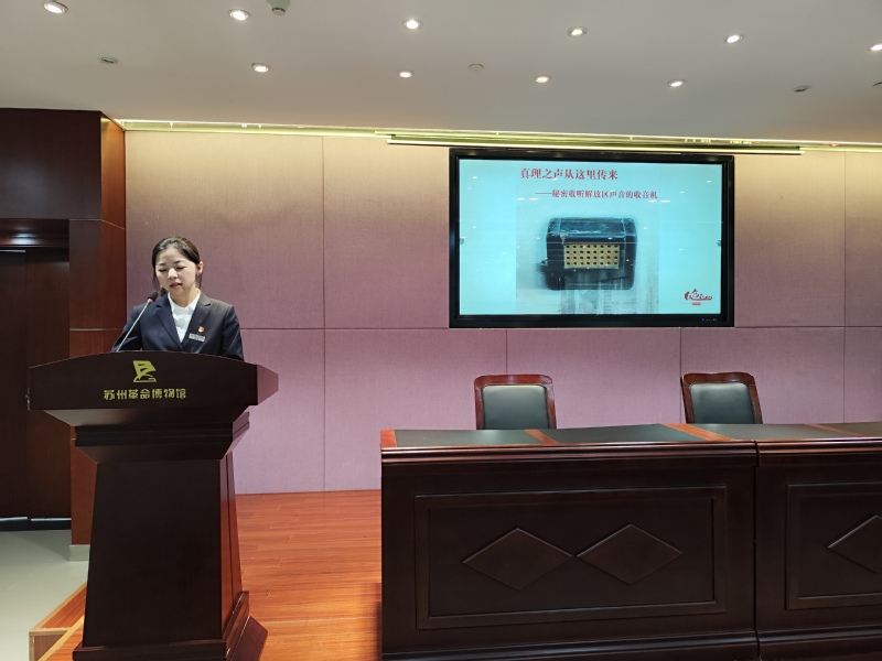 接着,苏州革命博物馆党支部的两位优秀的党员老师为党员们带来了《投笔从戎为初心》和《真理之声从这里传来》两节微党课。《投笔从戎为初心》主要讲述雨花英烈任天石一心革命、不惧牺牲,坚定目标、不断奋进的故事。任天石和千千万万的革命烈士一样,在革命的征途上,在斗争的最前沿,在敌人的牢狱中,都始终坚守对党的忠诚、对祖国的热爱和对人民的深情。生活在新时代的我们,应当常常缅怀,时时铭记。《真理之声从这里传来》讲述的是一台收音机的故事,收音机的主人黄肇模先生在统一战线的领导下,为人民的事业贡献着自己的力量。这台收音机如今收藏于苏州革命博物馆,作为历史的见证,供观众参观。通过两节微党课,党员们体会到了今天幸福生活的来之不易,也感受到了党员的责任与担当。