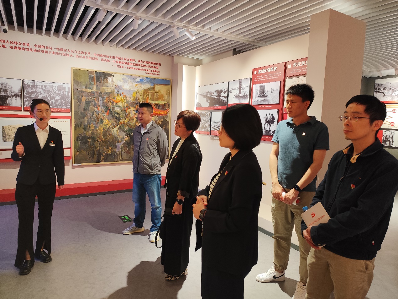 在博物馆讲解员的带领下,党员们首先参观了苏州革命博物馆。苏州革命博物馆是江苏省的党史学习教育基地,也是省一级的党员教育实践课堂示范点和苏州市首批“海棠花红”先锋阵地。馆内丰富的红色资源,是广大党员坚定理想信念、加强党性修养的生动教材。