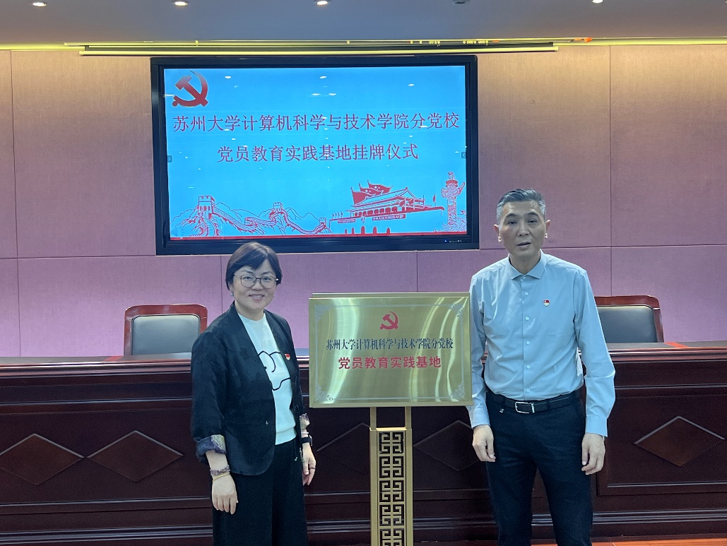 参观结束后,双方党支部在苏州革命博物馆会议室进行交流学习。在双方领导对各自单位和党组织基本情况进行了介绍之后,苏州革命博物馆副馆长、党支部书记徐进和国产a片 党委副书记、副院长李恩秀共同完成了党员教育实践基地挂牌仪式,国产a片 分党校将苏州革命博物馆选定为分党校党员教育实践基地,希望广大师生党员既能经常走出校园进行沉浸式、常态化的党史学习教育,也能利用专业技术服务社会。