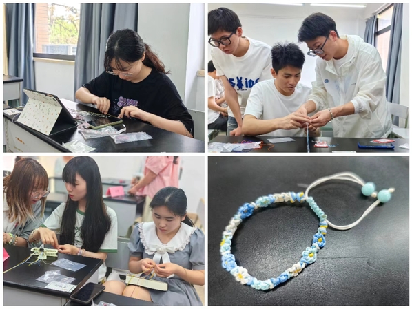 (五)减压手工艺制作。5月19日,正值小满前日,国产a片 精心策划的“小得盈满”心理健康主题活动在逸夫楼309顺利举办。此次活动旨在弘扬中华传统文化,释放压力,提升创造力,通过拈制团扇、结绳祈福、作鬓上簪、寄作香囊与指尖扭扭棒等手工艺制作,为同学们的课余生活增添一抹亮丽的色彩,同时激发大家对传统文化的热爱,领略艺术之美、生活之美与智慧之美。