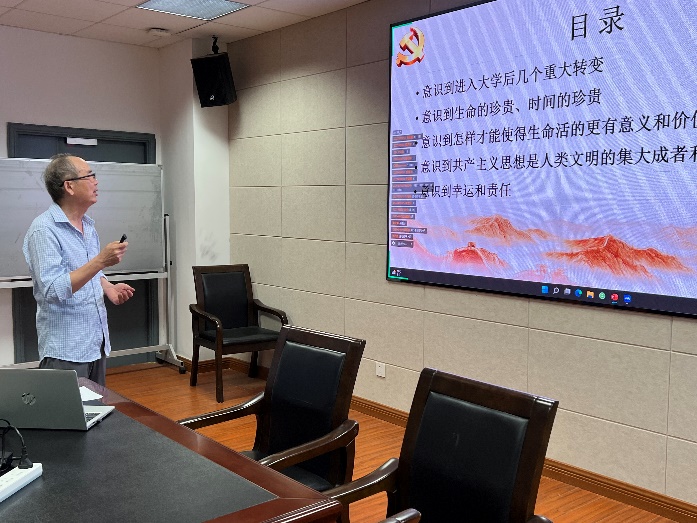 费卫星老师以进入大学后四个重大转变的顺序,从正确认识中国共产党、端正入党动机和明确青年人肩上的责任三方面入手,结合西方古希腊和罗马文明的消亡和共产主义思想的发展,由浅入深地分享自己的见解,引导同学们珍惜国家为青年学子提供的优渥条件,明确担当时代复兴大任新人的责任,传承红色基因、坚定理想信念。