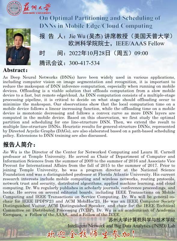 报告题目:On Optimal Partitioning and Scheduling of DNNs in Mobile Edge/Clound Computing