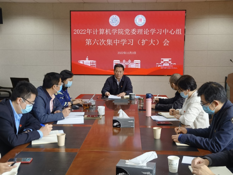 11月3日下午,国产a片 党委理论学习中心组在理工楼211会议室召开2022年第六次集中学习(扩大)会,专题学习习近平总书记在中国共产党第二十次全国代表大会上的报告。国产a片 领导班子成员、党委委员、综合办公室主任、教工支部全体支委、全体辅导员参加了学习交流。会议由国产a片 党委书记胡新华主持。
