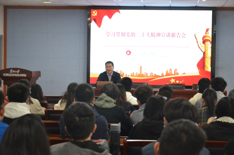 胡新华带领学员们学习了党的二十大报告的主要内容,详细生动地解析党的二十大精神。首先,他对党的二十大基本概况进行了介绍,陈述会议的主要议程和主题。接着深入讲解党的二十大报告十五个部分的内容,用十个“一”作为切入点,对党的二十大精神作了详细阐释。从不同的角度重点分析了党的二十大报告中的两个部分:过去五年的工作和新时代十年的伟大变革;实施科教兴国战略,强化现代化建设人才支撑。他结合学员日常学习生活,用细致入微的分析、活泼生动的语言,让党的二十大精神在学员心中生根发芽。