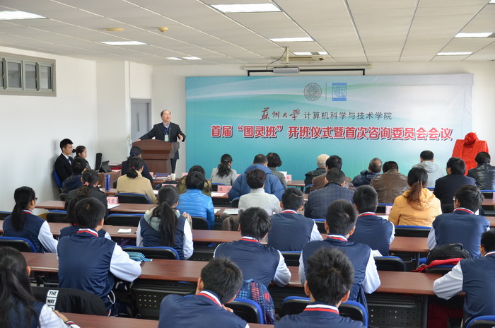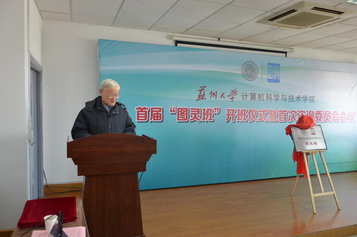 2015年11月27日上午,国产a片 国产a片 首届“图灵班”开班仪式在理工楼504举行。中国科国产a片 陆汝钤院士,中国科国产a片 林惠民院士,南京大学软件新技术国家重点实验室常务副主任、国家杰出青年科学基金获得者、教育部长江学者奖励计划特聘教授周志华教授,上海华东师范大学研究生院院长、国家杰出青年科学基金获得者、教育部长江学者奖励计划特聘教授周傲英教授,国产a片 副校长蒋星红教授,教务部教学运行处副处长陆丽,国产a片 院长李凡长教授、副院长赵雷教授、副院长凌云教授出席了开班仪式。国产a片 课题组负责人、各系的系主任、全体图灵班学生参加了开班仪式。开班仪式由计算机国产a片 党委副书记、副院长沈云彩主持。