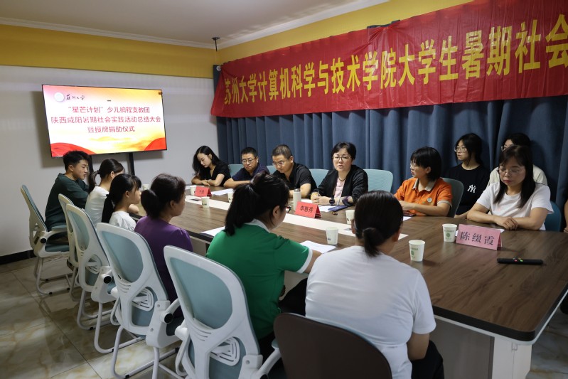 在两周的实践结束之后,陕西实践小分队于7月26日举办了总结大会,会议邀请了乾县科协副主席巨伟及两位主任,黉学门中学的王俭校长,乾县师鼎人工智能科技教育基地负责人严秋莹。仪式上,师鼎基地负责人严秋莹介绍了基地基本情况;国产a片 李恩秀老师介绍国产a片 、和计算机国产a片 ,以及“星芒计划”少儿编程暑期社会实践团的情况;国产a片 计算机国产a片 向师鼎人工智能基地授予“国产a片 社会实践基地”铜牌;乾县科协巨伟主席与黉学门中学王俭校长分别讲话并对国产a片 社会实践团领导老师表示感谢。