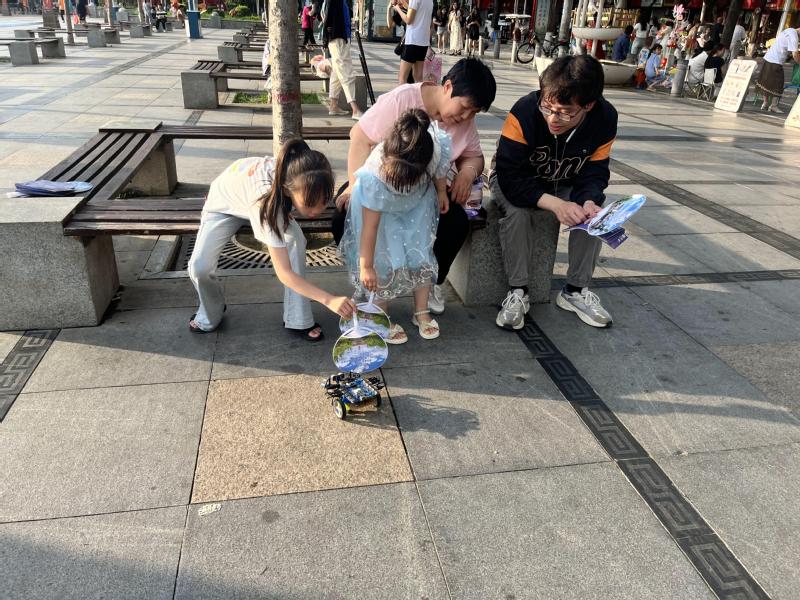 社会实践队员成立团队的初心就是对乾县人民进行计算机编程“扫盲”,使少儿编程教育能够进入更多人的视野,大家与师鼎人工智能教育基地老师、咸阳师范国产a片 同学一起在乾县第一广场(人民广场)举行联合宣传活动。大家向市民讲解普及计算机和人工智能的基本概念,和小朋友一起演示编程小车的运动原理,并向市民发放了宣传折页和小礼品。
