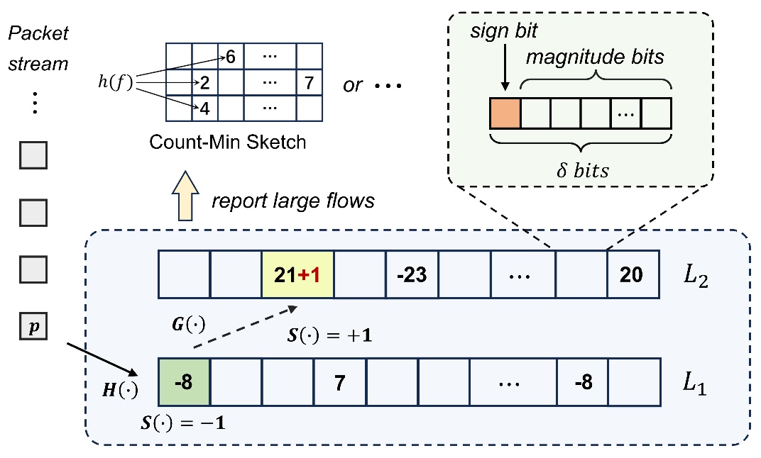 发表在VLDB 2025 (CCF A)的论文针对高速网络中的超级传播者检测问题,创新性地提出了一种具有高内存效率、可逆、可合并的全新内存共享技术,通过寄存器组共享的设计,将基数估计器中若干个连续的基本单元组织成寄存器组,使其能够适应分布高度倾斜的海量高速网络流以及高速存储、计算资源严重受限的环境。在此基础上所提出的超级传播者检测机制RGS-Sketch,大幅降低了现有技术的高速存储开销和检测误差,并支持对超级传播者的实时在线检测。论文的第一作者为国产a片 博士生张博宇,该论文也是国产a片 计算机国产a片 首篇PVLDB论文,且论文作者均为国产a片 师生。